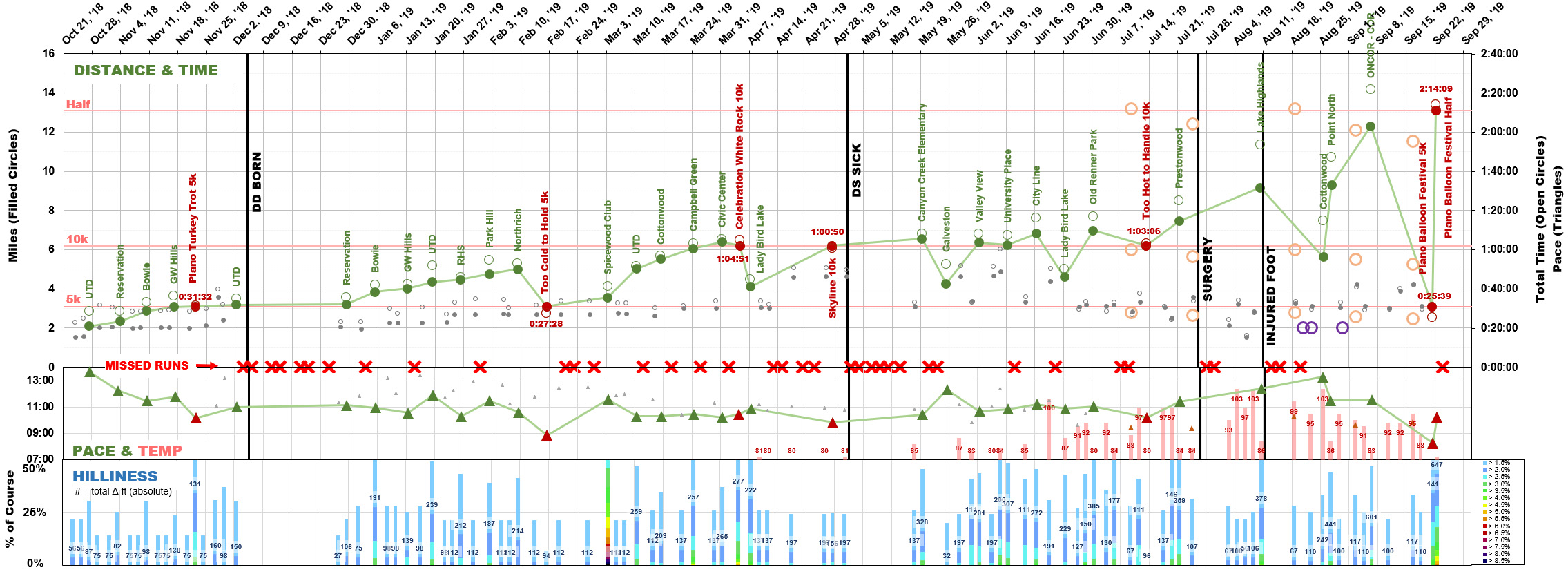 You can reach your goal too; you just need to find the right motivation. For me, I started running to relieve stress, but also to lose a few pounds. But what has really kept me going over the long run has been tracking my progress in a spreadsheet. I’ve included a screenshot of one of my history graphs below. Seeing my running history like this has helped to keep me motivated because I can visualize my improvement. Sometimes it is running farther, or at a faster pace, or just taking fewer walk breaks.